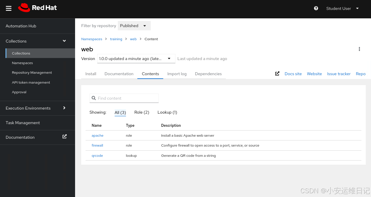 如果是Red Hat合作伙伴,需要将你的集合发布到红帽的Automation Hub ,则使用Red Hat为你的公司分配的命名空间