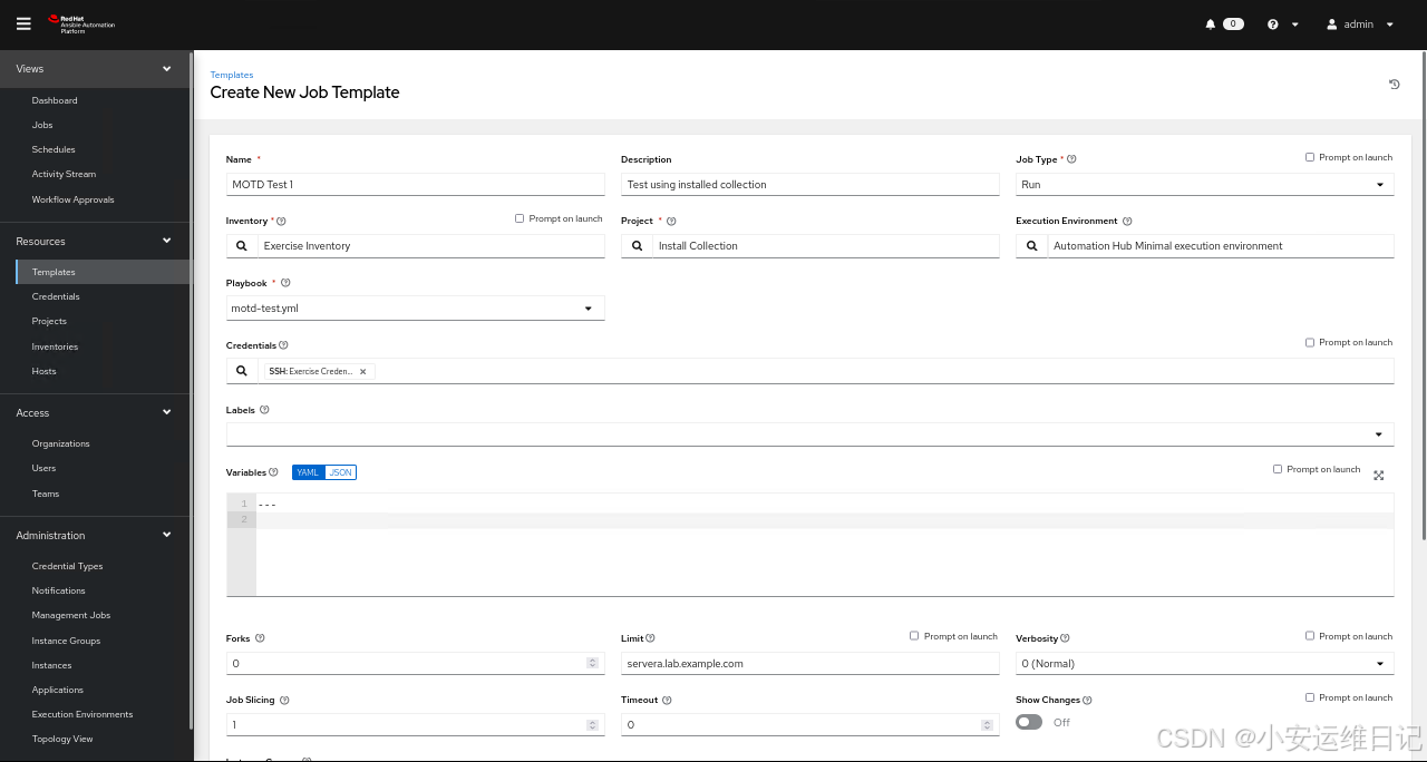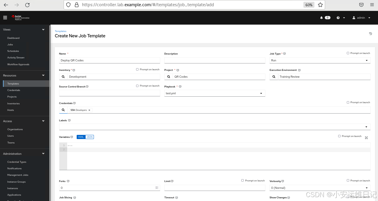 1)导航到Resources > Templates,然后单击Add > Add job template