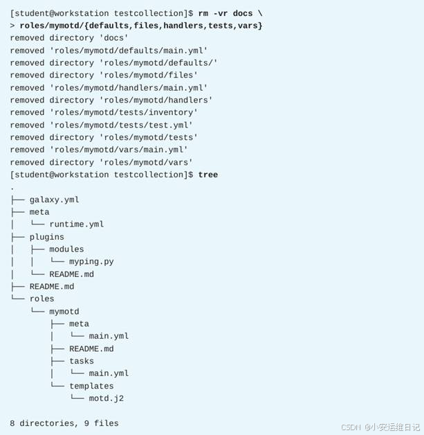 对于用不到的文件和目录,可以直接删除。例如,如果集合中没有角色,就可以删除roles/这个目录。