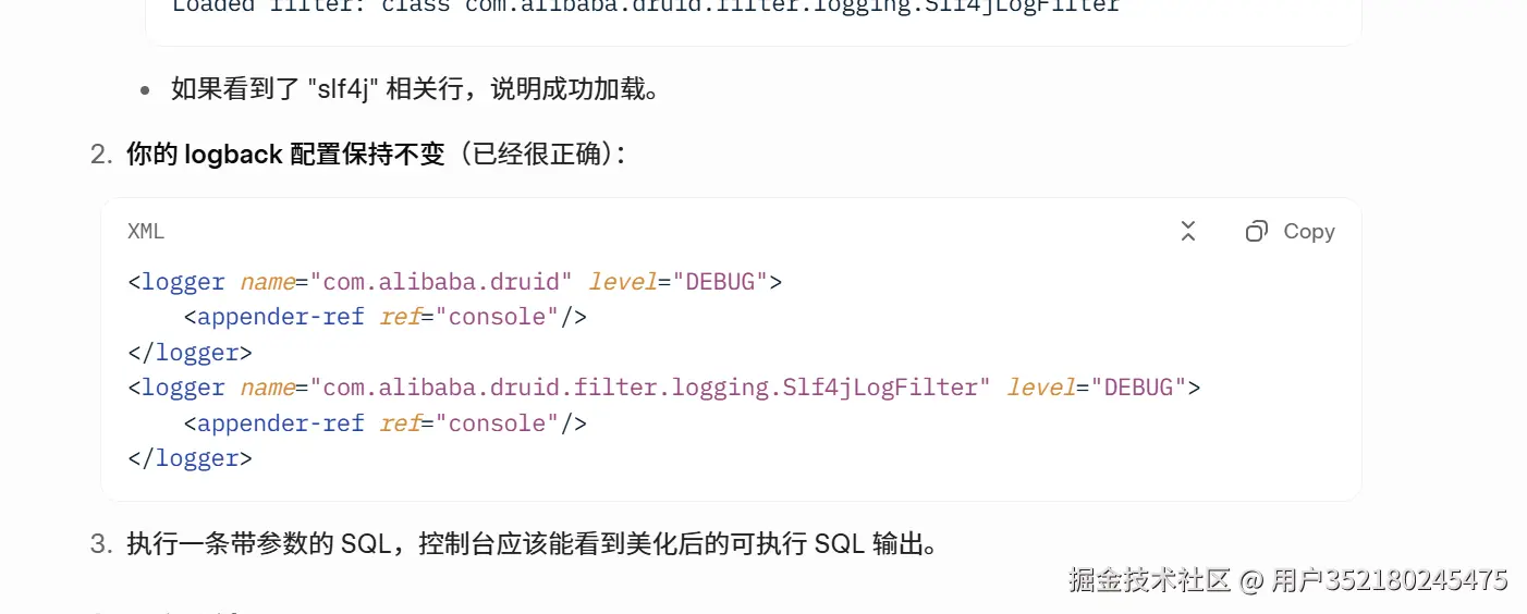 DEBUG com.alibaba.druid.filter.logging.Slf4jLogFilter - executable sql: