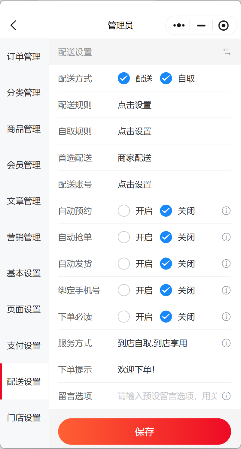 接单超时时间的配置位于订单管理 -> 设置模块中。商家可以根据自己的业务需求设置合适的超时时间。设置时需要注意以下几点: