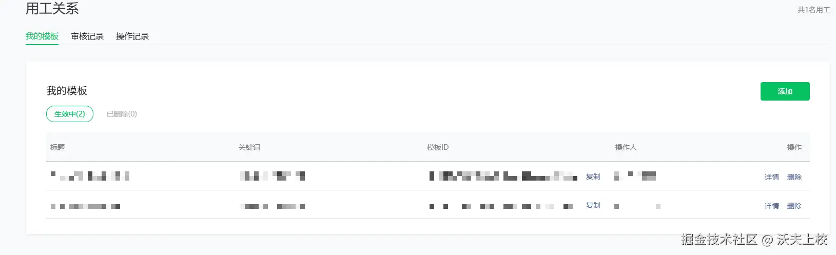 3. 新增用工消息模版