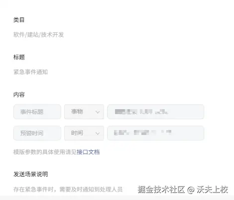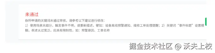 - 为增加审核通过几率,模板的发送场景说明写详细一点,具体使用场景是什么?怎么触发的消息?