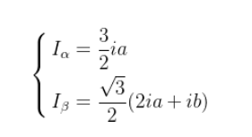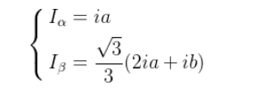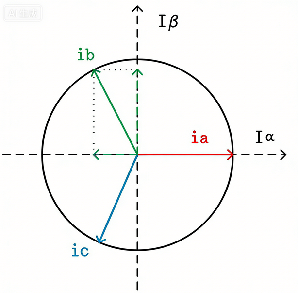 - 确定α轴:通常将α轴与A相轴线重合,即满足 iα=k⋅ia,