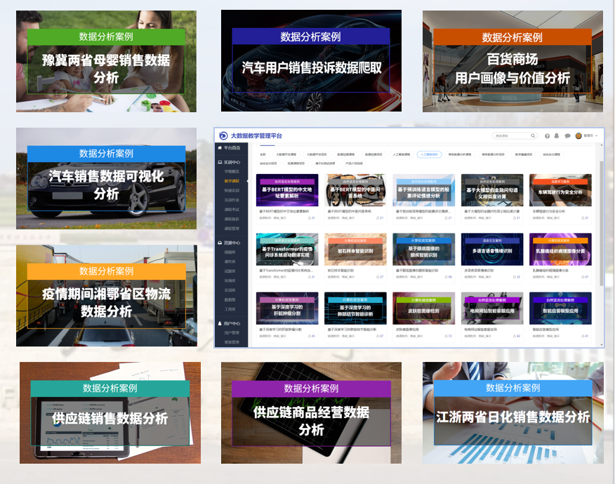 主要内容:大数据教学管理平台;大数据方向课程案例10余门