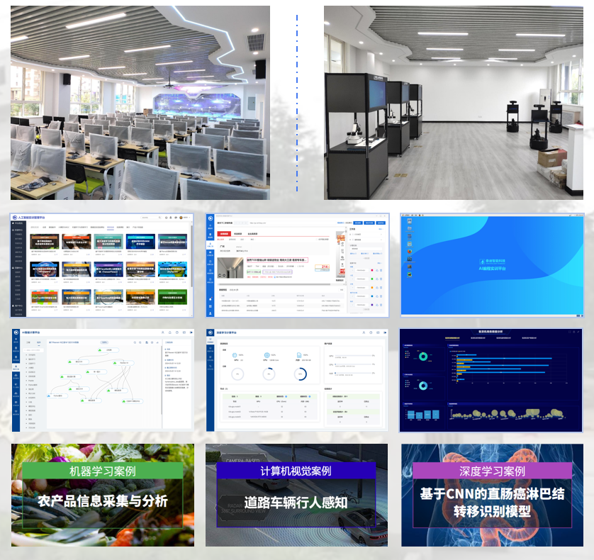 主要内容:云计算资源管理平台;人工智能实训管理平台;数据采集平台;AI编程平台;AI智能计算平台;智能可视化平台;深度学习科研计算平台;智能机器人;人工智能方向课程案例10余门