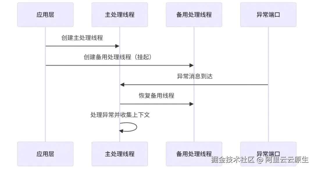 - 备用处理线程:主处理线程崩溃时的后备份方案