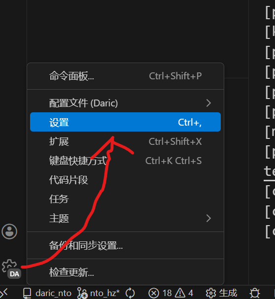 LLVM需要在VScode中添加路径,首先点这个齿轮找到设置: