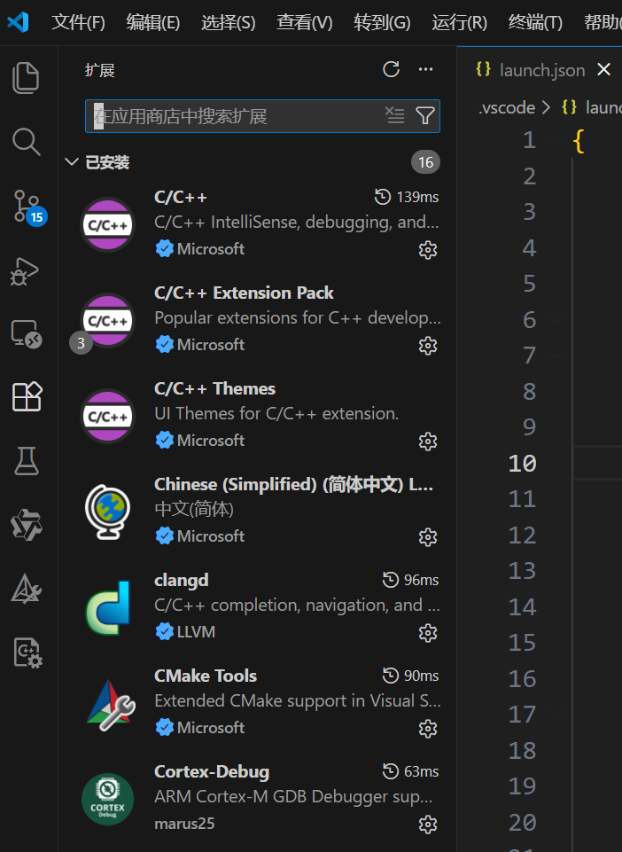 针对基于CMake构建的芯片例程开发均可以使用如下配置,本文暂时只讲操作不讲原理,网上资料很多大家可以自己去搜。