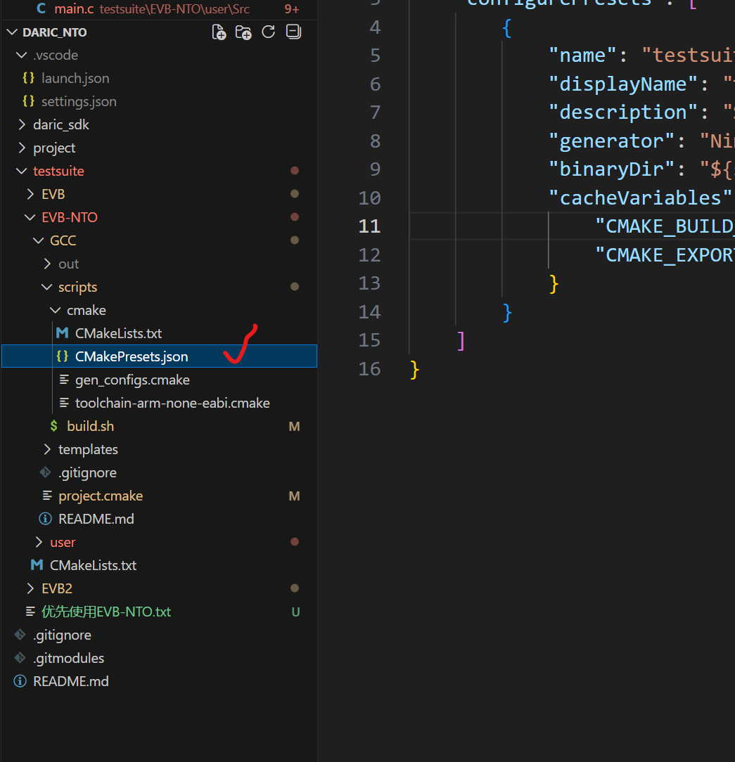注意第一个路径,对应着你的"目标构建文件"的CMakelists和CMakePresets,这是一种目前很流行的工程固件编译管理模式,通过编译脚本编译出不同的开发板、产品板适配的固件。