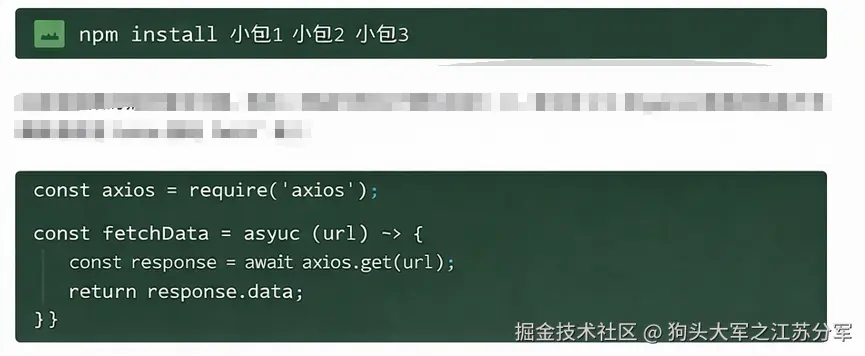 光这一点就够痛快了:别总想靠包解决一切问题,有的时候其实内置已经够用了。但问题是,社区心态还停留在从前。npm 生态太丰富,导致一个小功能前前后后会有好几个包,你看着别人用,就不自觉装上。这就造成了一个"依赖恐惧症"------别人装了,我不装好像不专业一样。