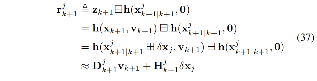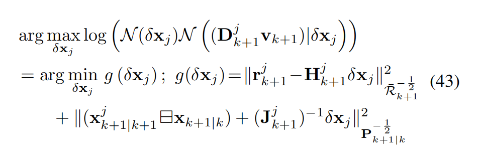 x k + 1 ∣ k + 1 j + 1 = x k + 1 ∣ k + 1 j ⊞ δ x j o (46) x^{j+1}{k+1|k+1} = x^{j}{k+1|k+1} \boxplus \delta x^o_j \tag{46} xk+1∣k+1j+1=xk+1∣k+1j⊞δxjo(46)