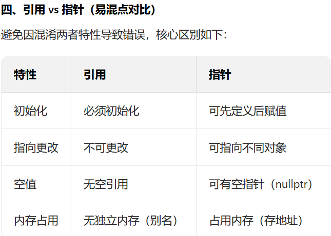 引用是变量的 "别名",不能先定义、后绑定,这是和指针最核心的区别。
