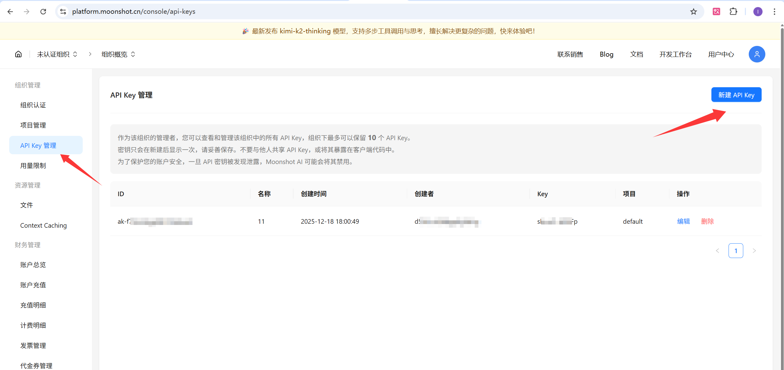 四. Kimi(月之暗面 / Moonshot) 获取API Keys