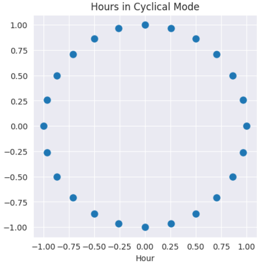 这两个值结合在一起唯一确定了当前的小时,23:00 和 00:00 在特征空间里的距离就被拉得很近了,这正是我们想要的效果。