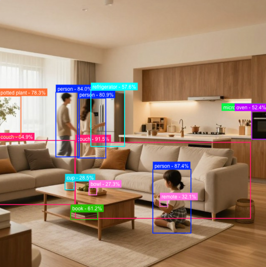 在家庭或办公室环境中,YOLO11 可以实时检测人体或宠物姿态,判断活动状态,如走动、坐下或跌倒,及时触发安全提醒或智能家居设备响应,提升家庭安全和智能化体验。