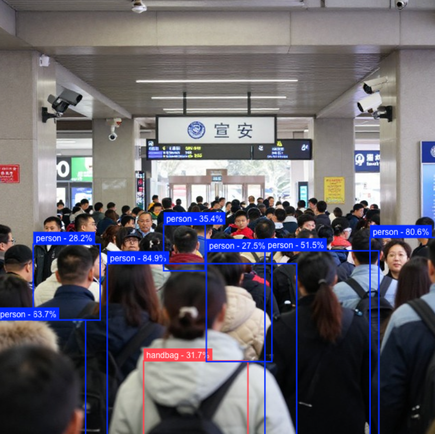 在车站、商场或广场等公共场所,YOLO11 可以实时监测人群数量、流动方向和密度变化,判断人群活动状态,如拥挤、分散或集结。系统能够及时提供人流分析数据,为安保和管理人员提供决策支持,提升公共安全和管理效率。