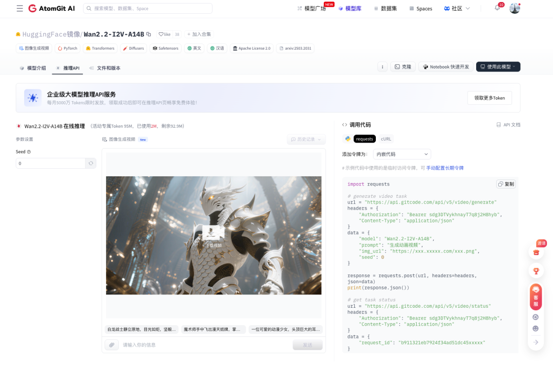 Wan2.2‑I2V‑A14B: https://ai.gitcode.com/serverless-api?model=Wan2.2-I2V-A14B
