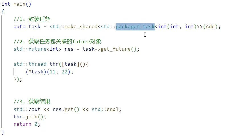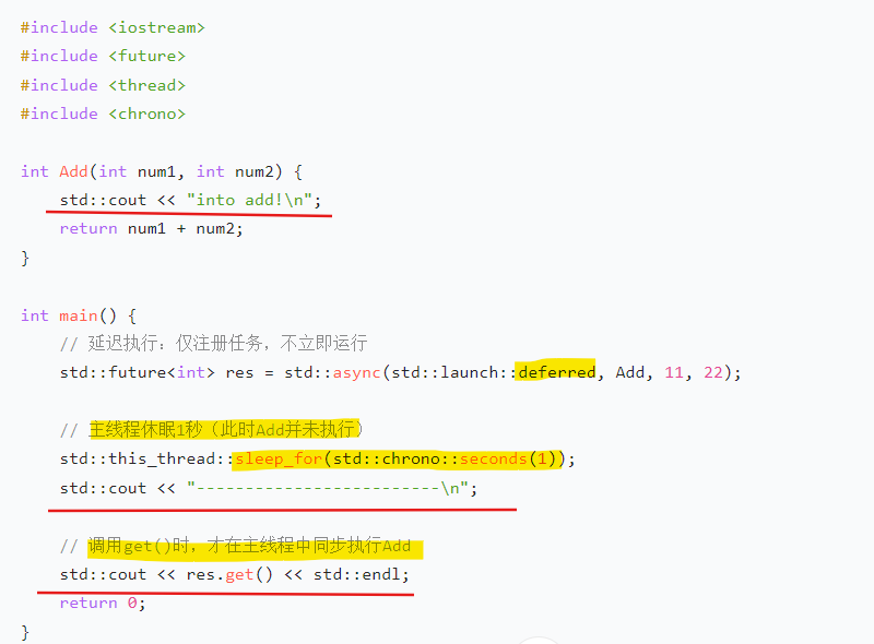 运行效果 :先输出分隔线,再输出into add!(get()触发任务执行),最后输出结果33。