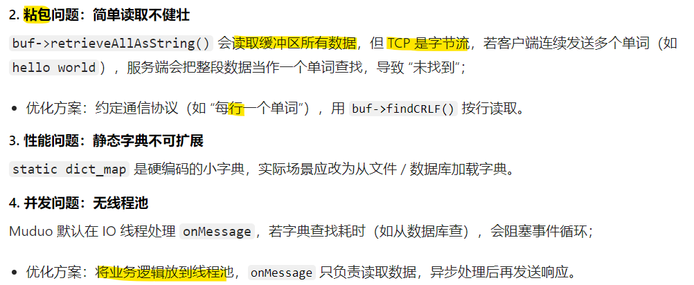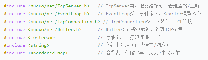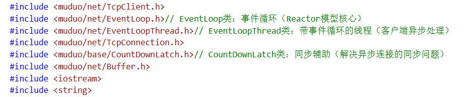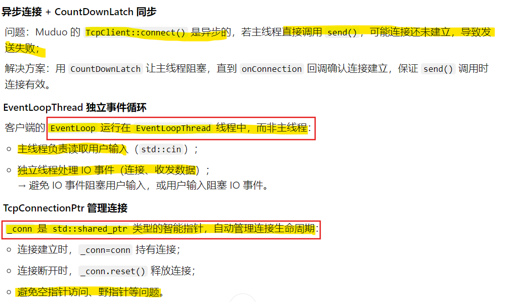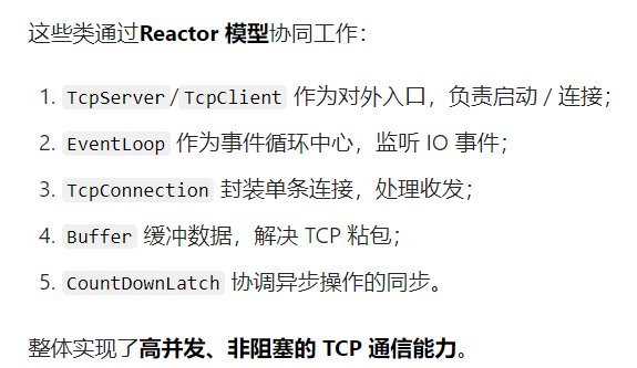 是专为 C++ 服务端设计的轻量网络库 ,与 "简单 RPC 框架 "定位完全匹配 ;接口设计简洁,封装了 epoll、线程池等 底层细节,上手极快 ,开箱即用的异步 IO 模型,无需手动实现网络基础组件,内置Buffer类自动处理粘包 / 拆包 ,网络层与业务层解耦,后续扩展(如 SSL、UDP)成本低 。基于 epoll 的高效 IO 复用 ,性能接近原生 socket,同时避免了原生开发的复杂度。
