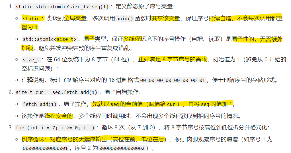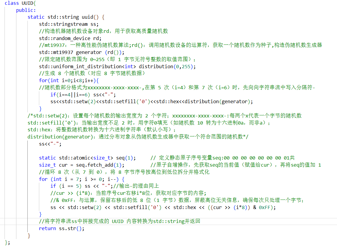 日志用于记录、输出项目信息 ,JSON序列化 、UUID通用唯一识别码(一种用于在分布式系统中唯一标识信息 的数字,表示形式为 32 个十六进制数字 ,以连字符分隔为 5 段,格式为8-4-4-4-12,共 36 个字符 ),在这里,采用生成 8 字节随机数字,加上 8字节序号,共 16 字节数 组生成 128 位 16 进制字符(即32个16进制数)的组合形式来确保全局唯一的同时能够根据序号来分辨数据 。注意:1字节=8Bit,通常4Bit表示一个16进制,即1字节=>2个16进制,16字节=>32个