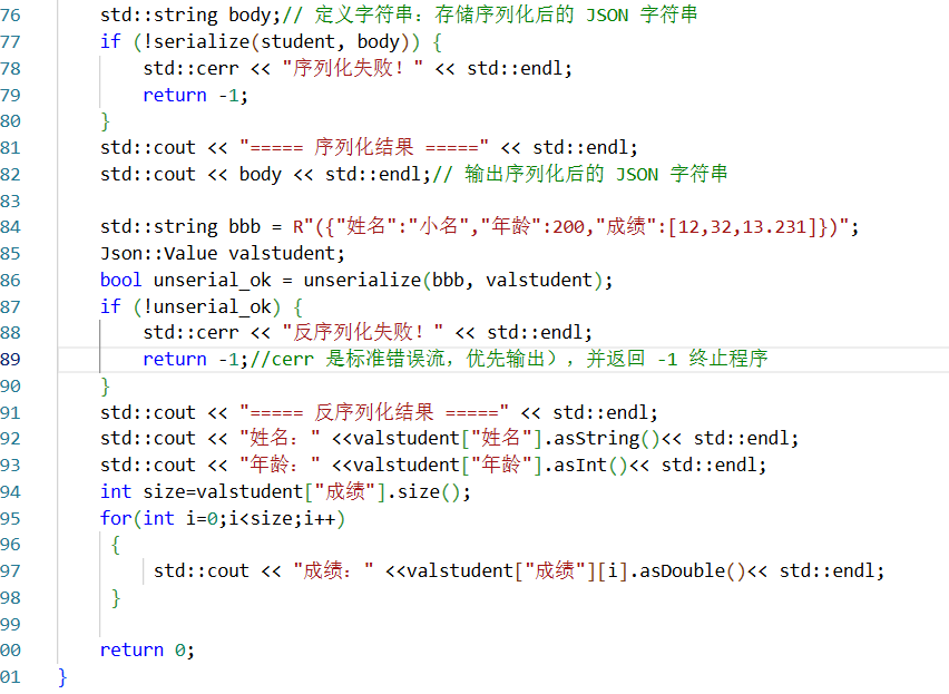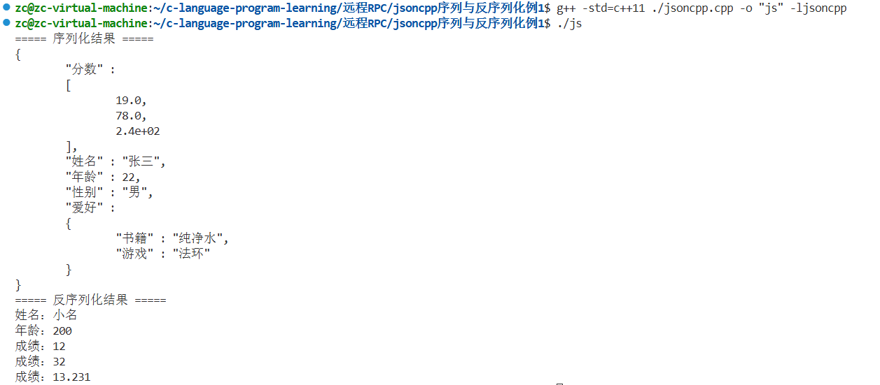 Json::Value构建 JSON 对象 / 数组,再转换为字符串; - 反序列化时,解析 JSON 字符串后得到的结果会存储在