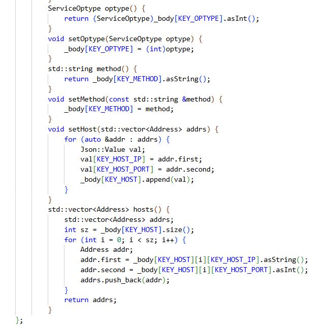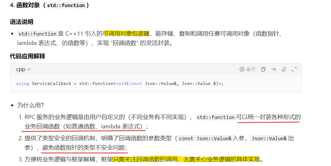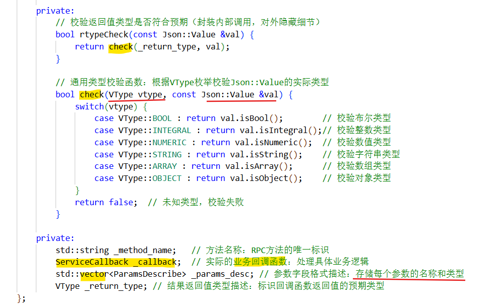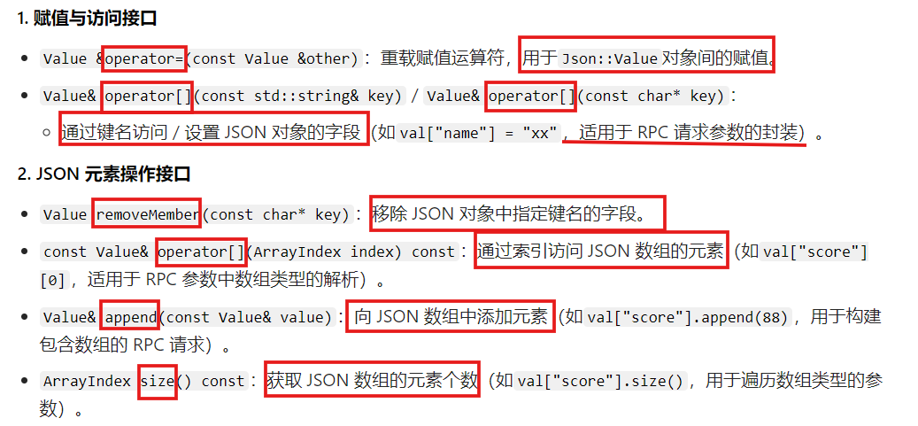 上述接口是在 RPC 框架中封装请求参数、解析响应数据 的核心工具 ------ 通过operator[]构建 JSON 对象,通过append处理数组,再通过asXXX()将 JSON 值转为业务代码所需的 C++ 类型,完成数据的序列化与反序列化。