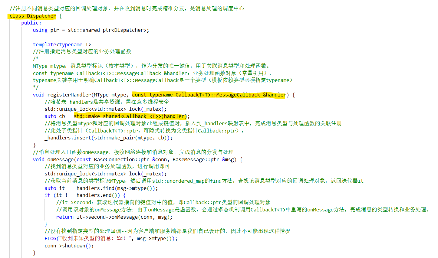 消息回调处理与消息分发核心模块 ,负责注册不同类型消息的处理函数,并在收到消息时完成精准分发与类型转换