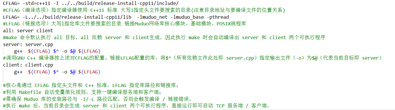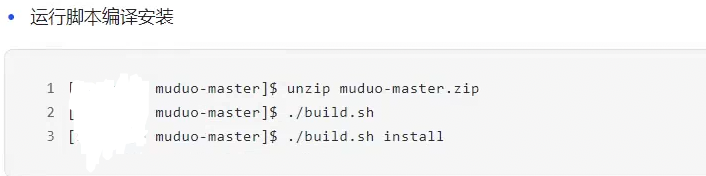 。./build.sh install:编译并安装 muduo 库 (全局可用),将 muduo 的头文件、库文件拷贝到系统全局路径,让所有项目可直接链接使用。