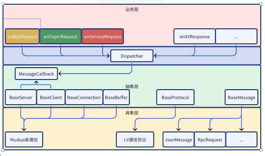 该模块复杂庞大,主要依据Muduo库搭建,实现底层的网络通信功能。