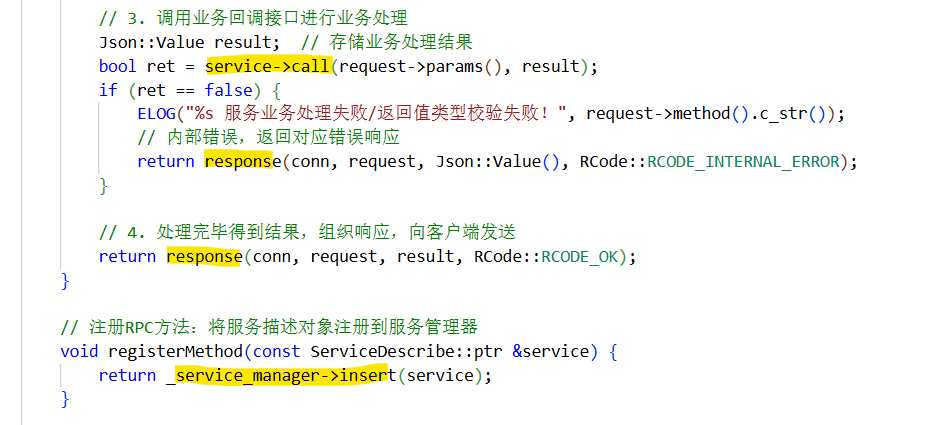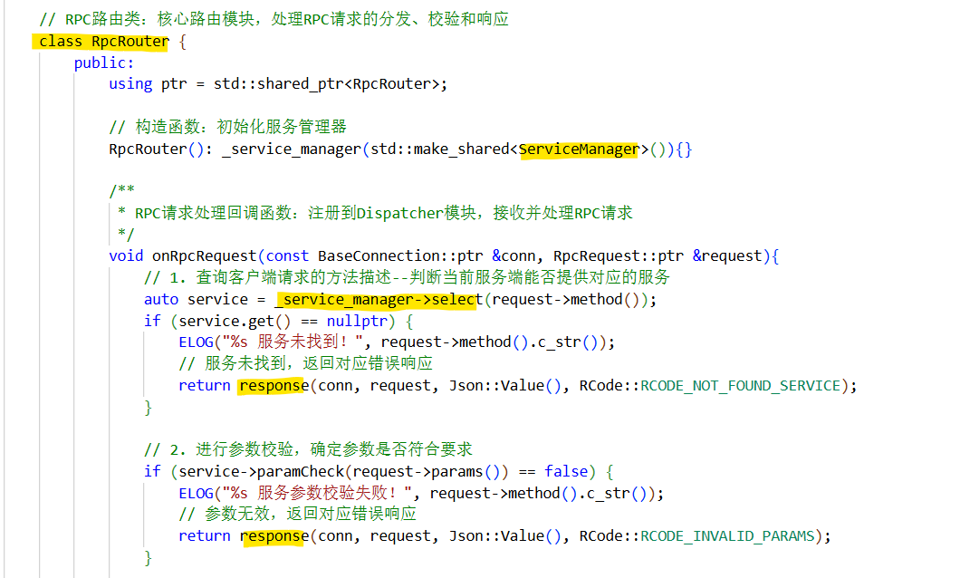 RPC(远程过程调用)服务端的核心路由与服务管理模块,主要实现了 RPC 方法的注册、查询、参数校验、业务调度及响应反馈等功能。