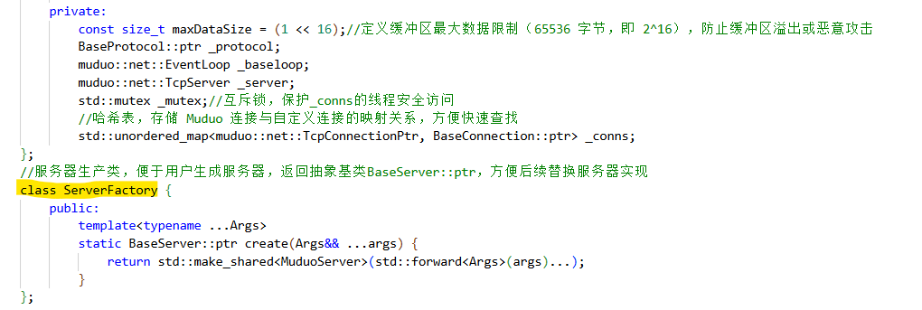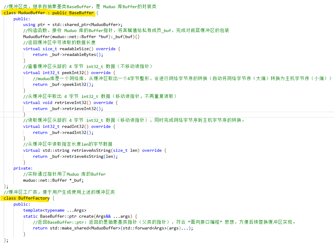 依据Muduo库实现了缓冲区、消息处理协议,连接,服务器,客户端; 所有具体实现类(MuduoBuffer、LVProtocol 等)均通过工厂类创建,降低耦合,便于扩展。