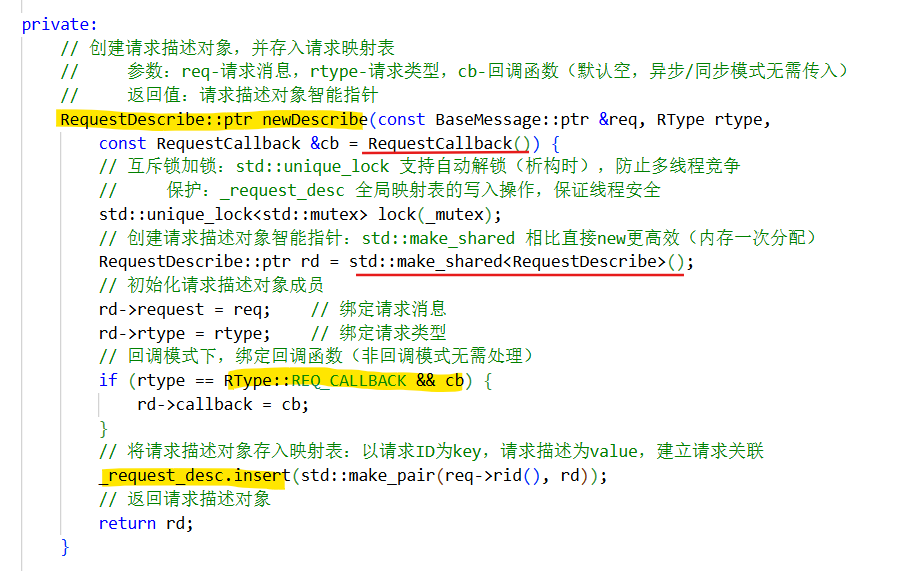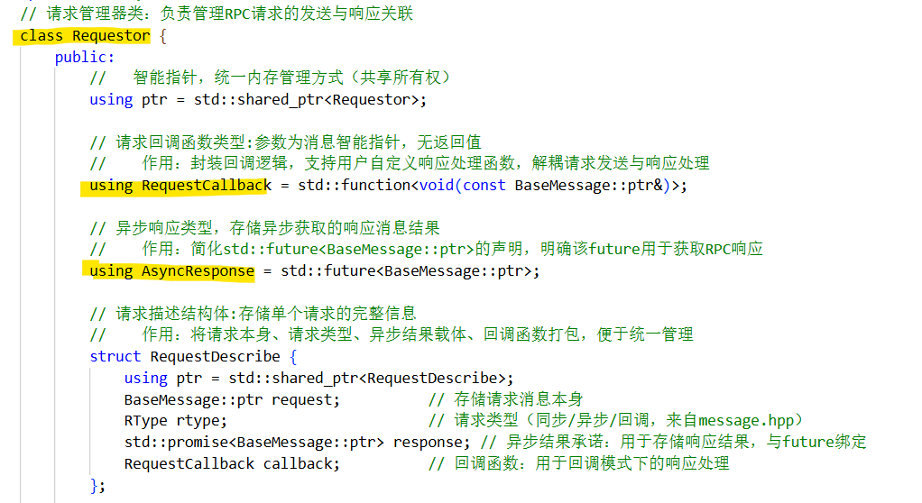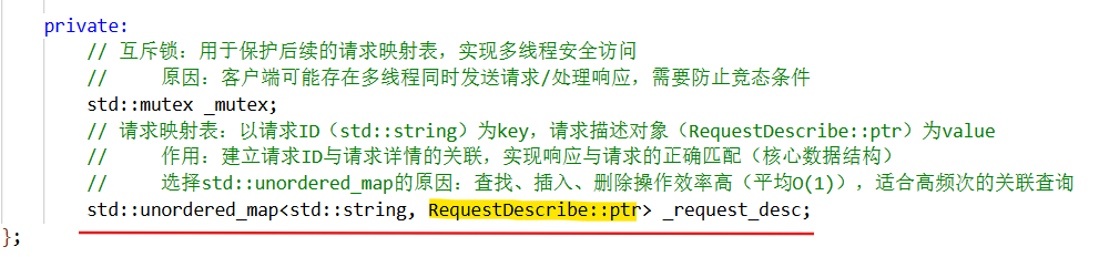 是 RPC 客户端的核心请求管理组件,通过 rid (消息的id)关联请求与响应,支持三种请求模式,保证线程安全和内存安全。