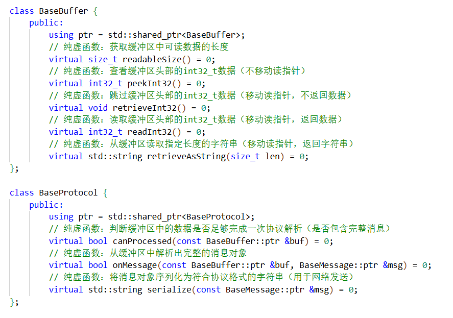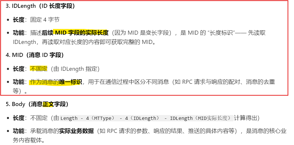 - 缺点:使用 Protobuf 因为生成一部分代码(protoc编译器会自动生成 C++ 代码(消息类、序列化 / 反序列化方法、RPC 服务桩代码),方便但不了解其生成的代码细节所以对理解不够友好; 如果是 json 定义 IDL 语言需要自己编写代码生成器难度大,暂不考虑这种方案