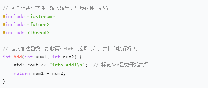 运行效果 :先输出into add!(异步任务启动),1 秒后输出分隔线和结果33。