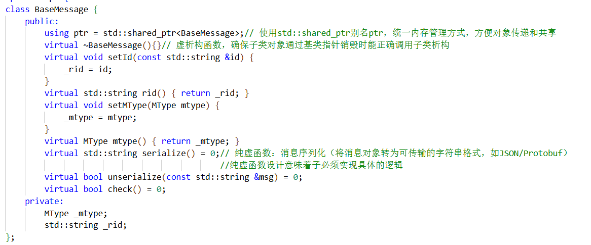 继承上述的BaseMessage抽象类,实现对消息对象处理的具体功能 (解决了 JSON 请求与响应消息/RPC请求与响应消息/Topic请求与响应消息/Service请求与响应消息的编解码、合法性校验等检测), 并用工厂模式,将消息对象的创建逻辑集中管理。