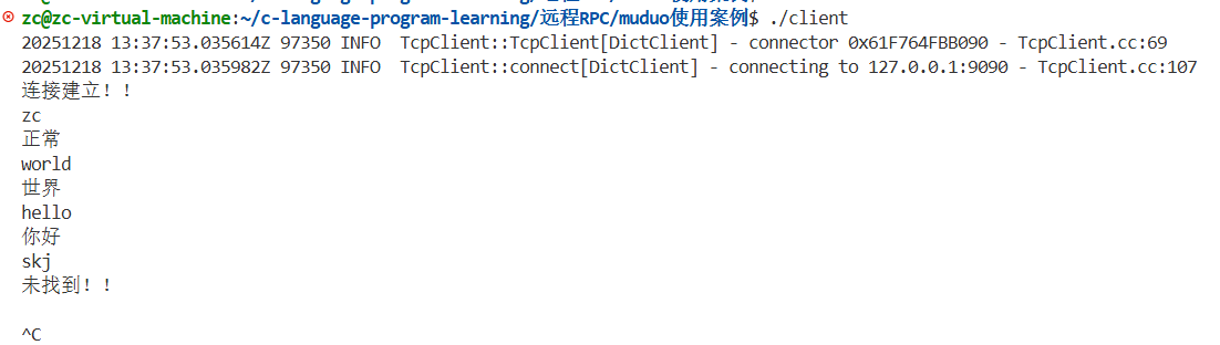 仅需理解 JSON 的基础结构(对象、数组、字符串 / 数字),无需掌握任何 C++ 高级特性或 Protobuf 内核 ;只需按约定的 JSON 协议封装参数、解析返回值,像使用普通接口一样调用 RPC,完全屏蔽底层映射逻辑;接口参数 / 返回值结构变更时,仅需修改 JSON 协议解析逻辑,无需重构框架核心代码;客户端可基于任意语言的 JSON 库 (如 Java 的 Gson、Go 的 encoding/json)调用你的 RPC 接口,轻松实现跨语言通信;与 muduo 网络库无缝集成 :仅需将 JSON 字符串作为网络传输载体,muduo 负责字节流收发,无需适配复杂的类型映射 ;可无缝支撑同步 / 异步调用;服务注册 / 发现、发布订阅等功能 ,均可通过扩展 JSON 协议字段(如服务元信息、订阅 topic)实现,扩展成本低;调试时无需借助 Protobuf 解析工具。