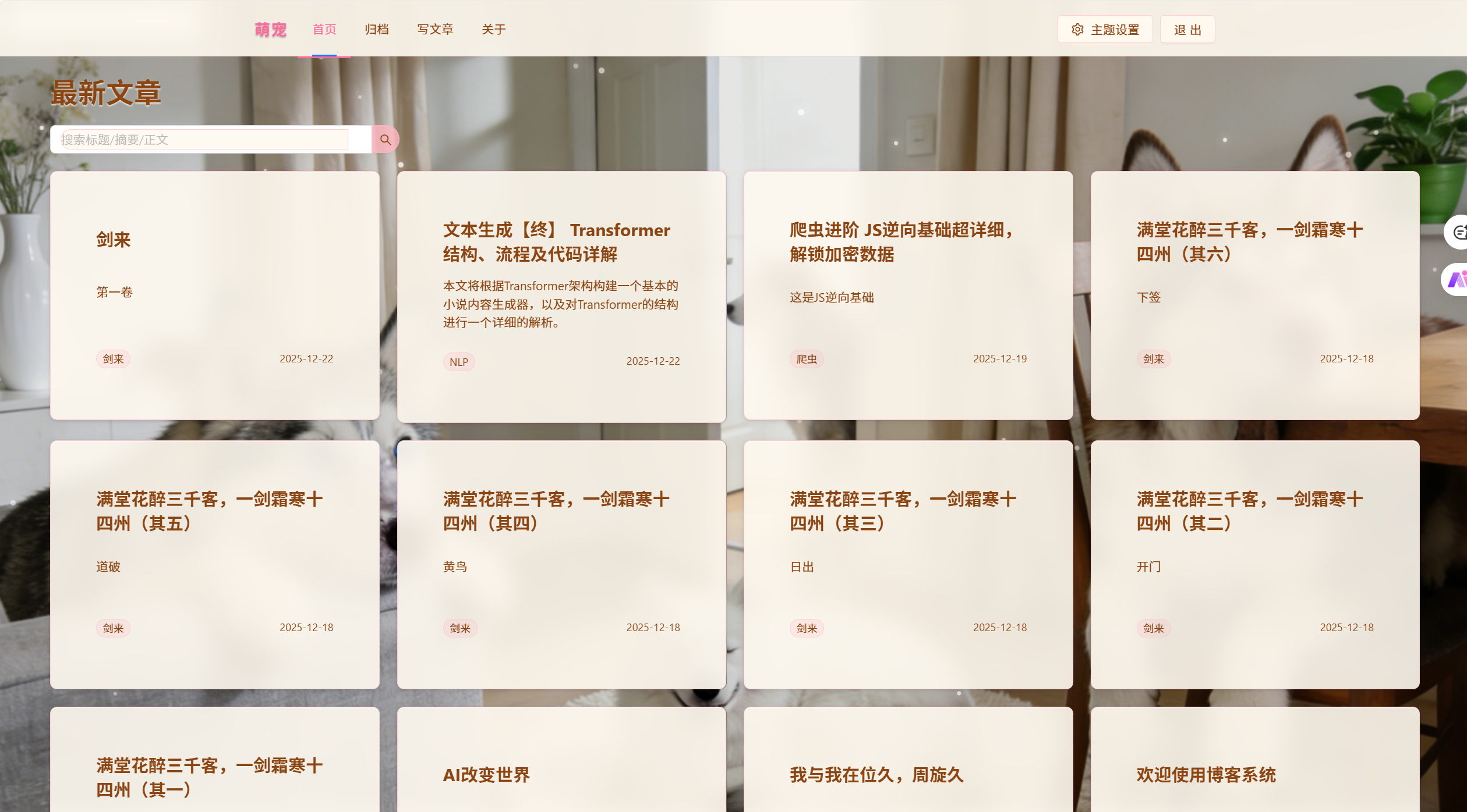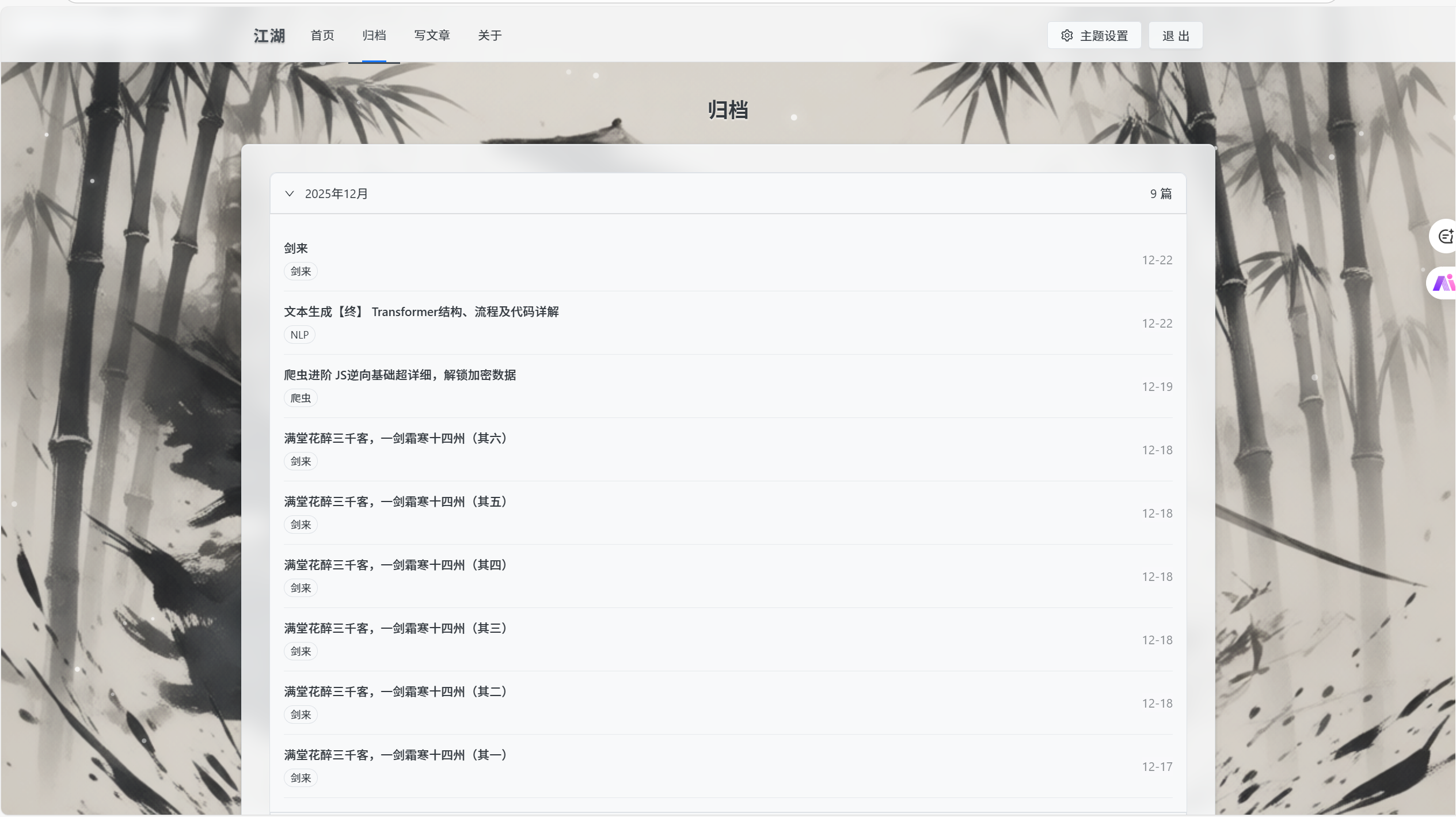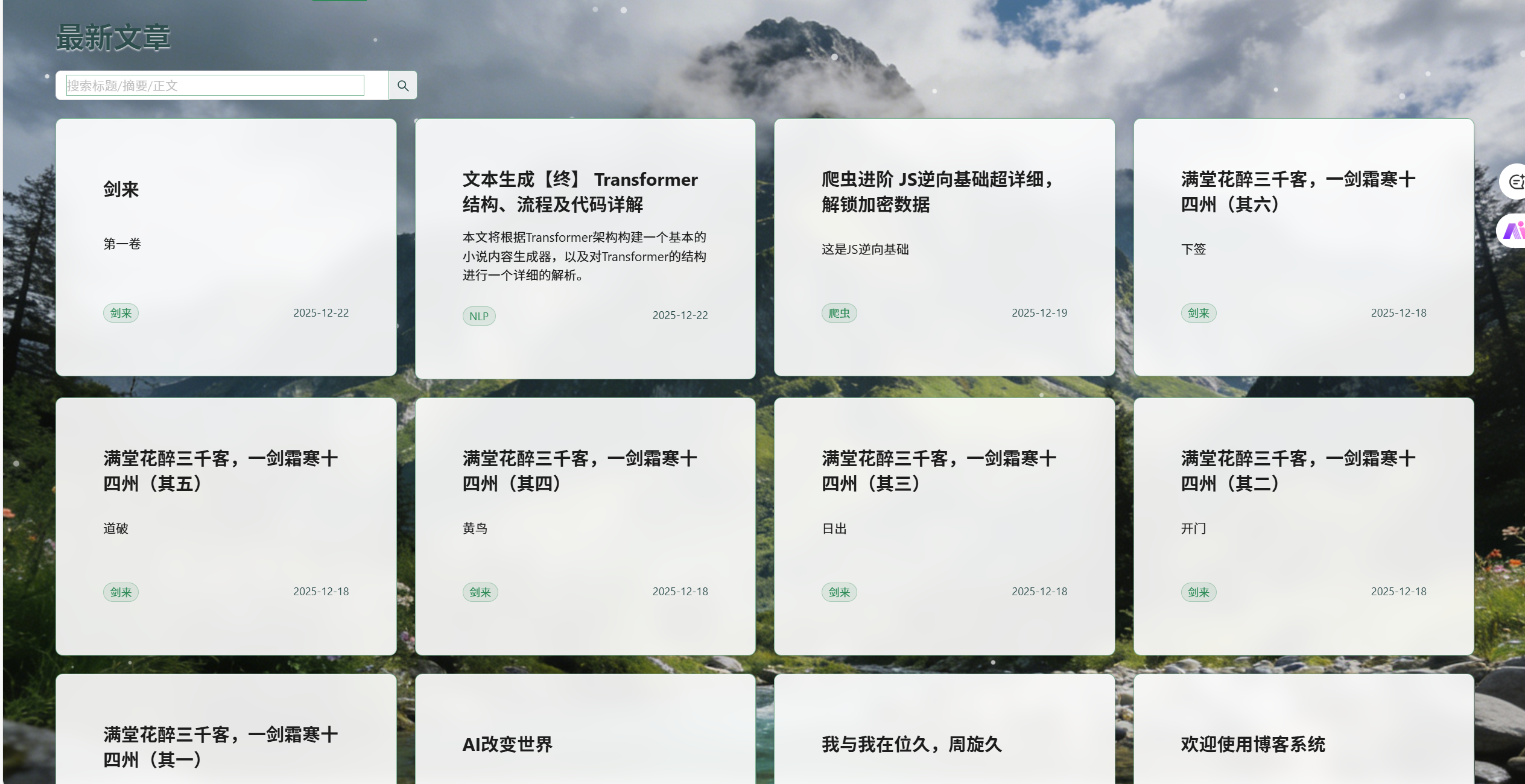 另外,我把之前写的两篇文章以及部分剑来小说放在了网站上,以后发的文章大概率也会在网站上更新,如果想看的话可以去我的网站换个心情。如果有机会的话,我以后会做个后端把我的一些实践项目放上来应用,比如一些模型什么的,有兴趣的不妨留个标记。
