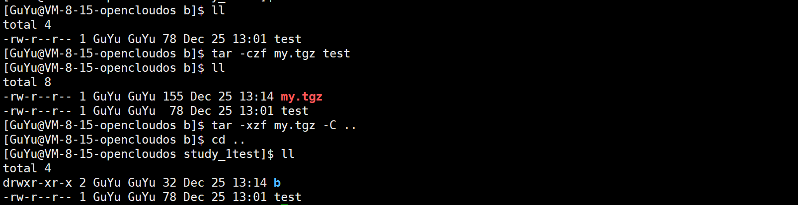 一般组合: tar -czf 压缩包名 被压缩文件名 tar -xzf 被解压文件名 (-C 指定目录)