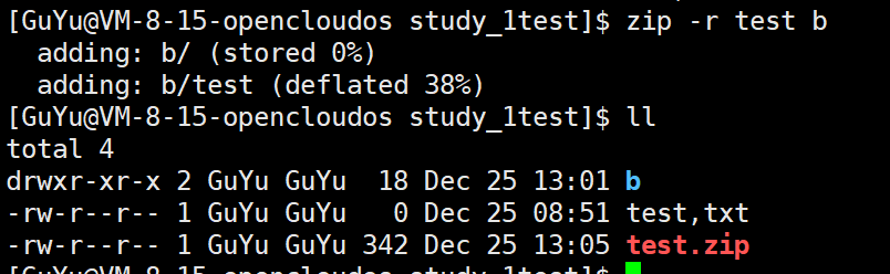 zip -r 压缩包名称 被压缩文件(目录文件/原文件),会自动添加.zip后缀