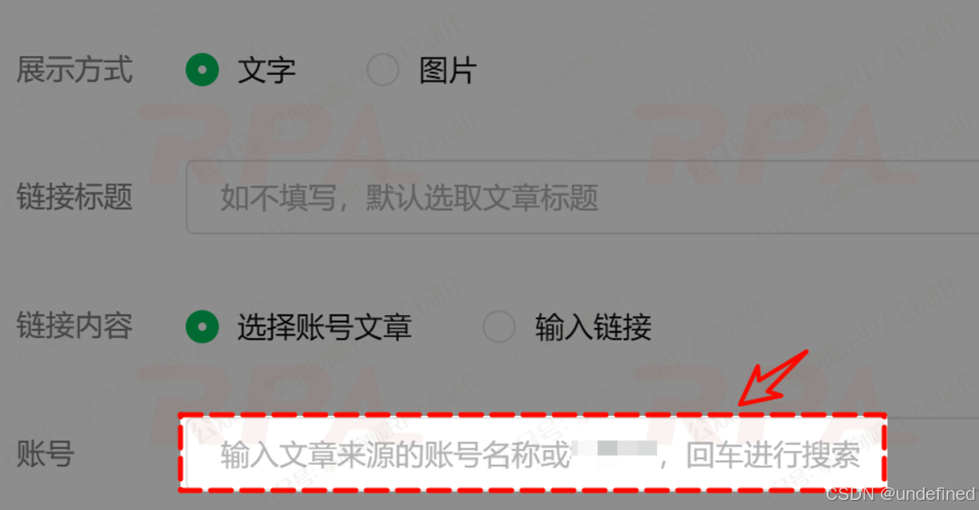 这是一款基于影刀RPA搭建的公/仲/呺对标账号文章采集自动化机器人,你只需要输入对标账号名称或ID,程序就会自动检索、翻页获取文章内容,并导出Excel表格到本地桌面,整个流程无需人工干预。