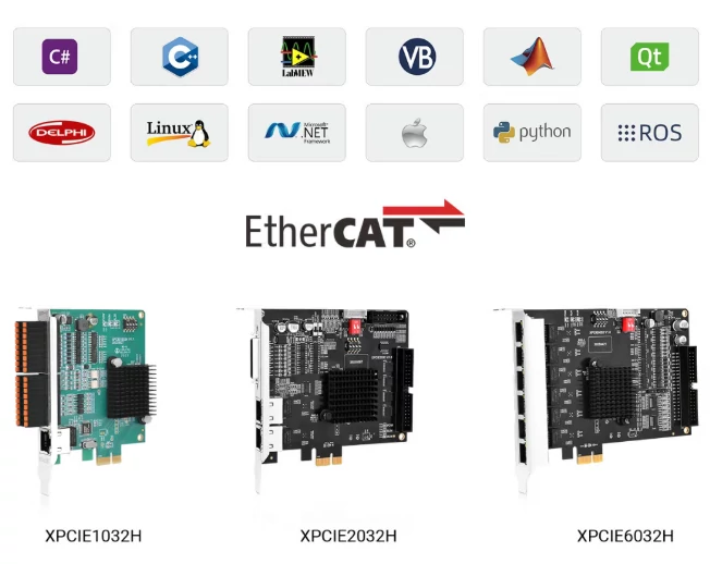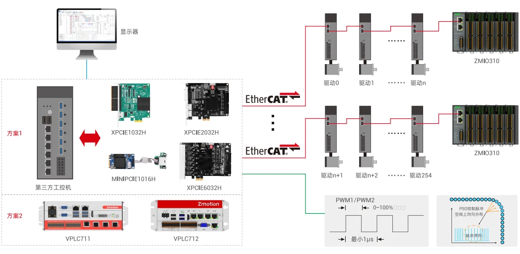 ● 4-64轴运动控制可选(脉冲+EtherCAT总线),EtherCAT最小通讯周期250us。