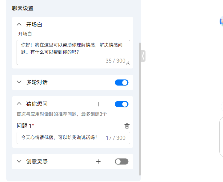 默认问题:"今天心情很低落,可以陪我说说话吗?"