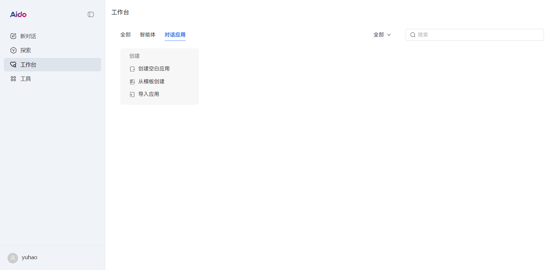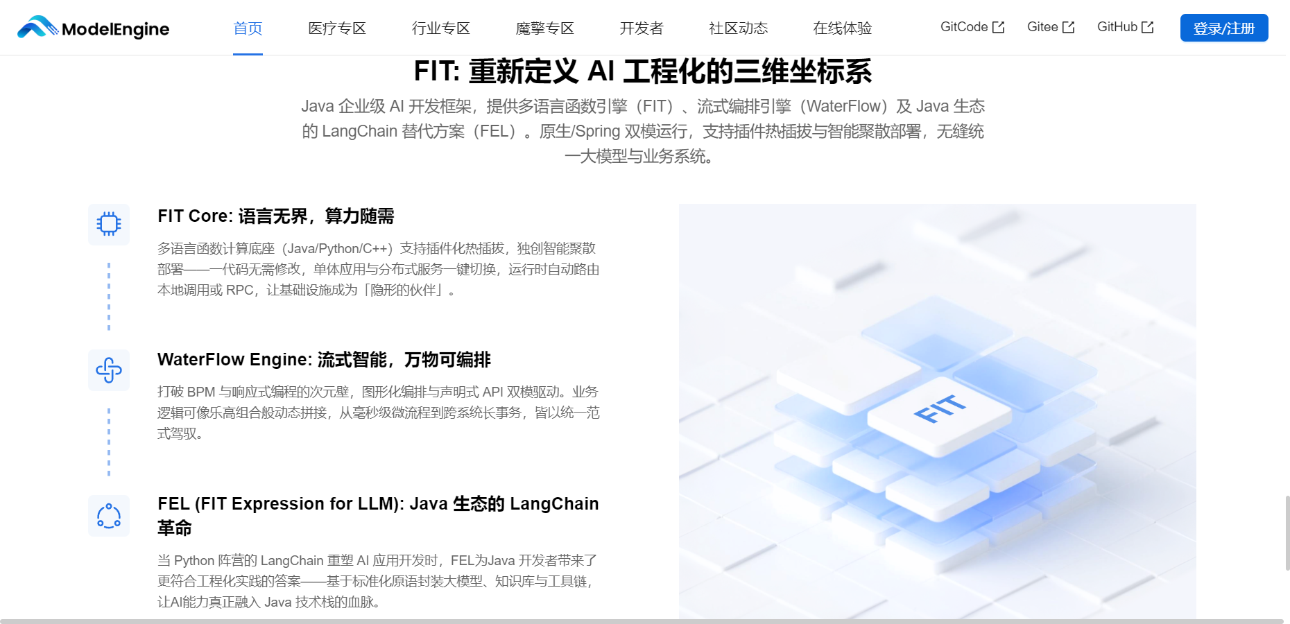 访问ModelEngine官网 https://modelengine-ai.net/#/home,依次点击"应用编排"→"在线体验"→"创建空白应用"。