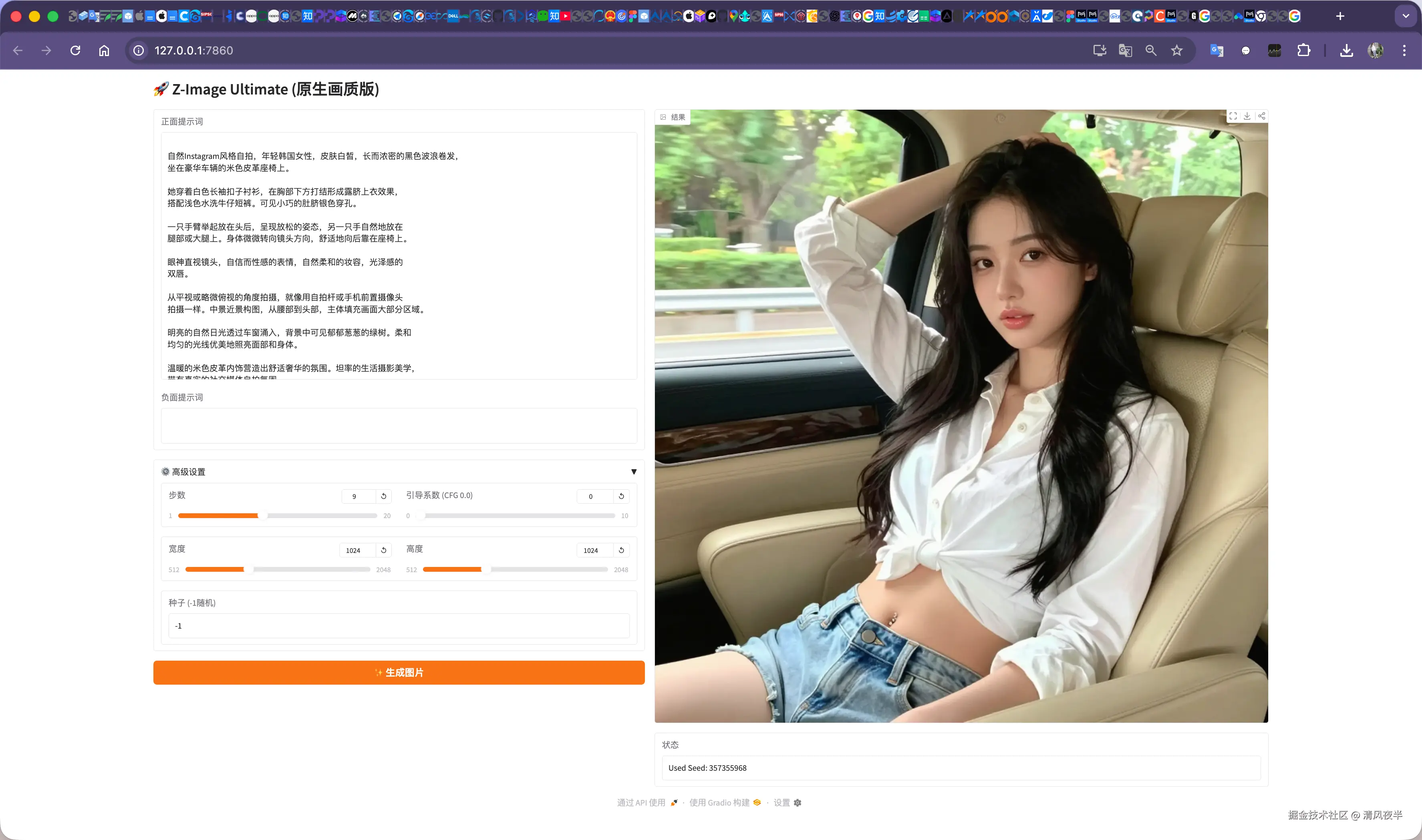 基本各种场景都尝试了一遍,考虑到只是一个6B的小模型,效果可谓是很惊艳,甚至有图片质量不输一些付费的AI平台。本地调试成功后,为了方便测试,用Vue替换了Gradio做了一个WebUI,并且把调节参数都开放了出来,这样打开浏览器就可以更加精准的控制生成效果,目前支持调节如下参数: