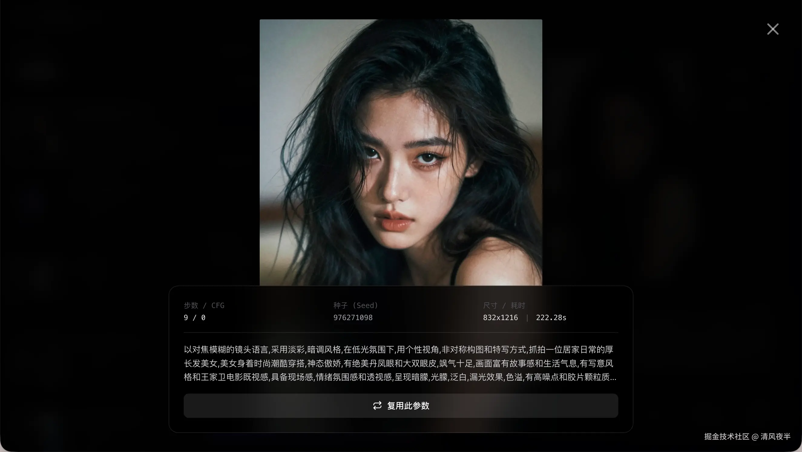 最终便是开始看到的效果,无论是从内存占用、生成速度、生成质量上都有了明显的提升,清晰度和质感和实拍照片没区别。