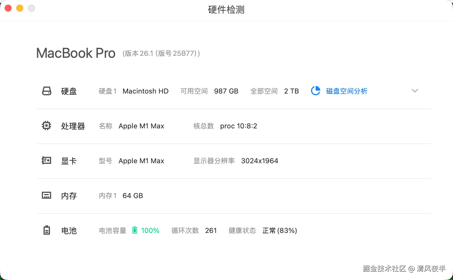 - 芯片:Apple M1 / M2 / M3 系列(Pro/Max/Ultra 体验更佳)