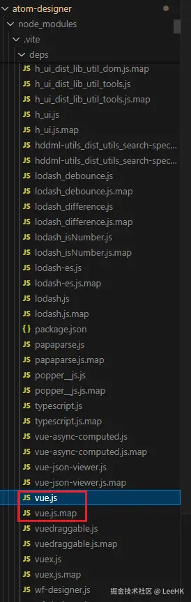 我得项目是基于vite构建得,本身能够加载node_modules中得map文件,但是由于vite构建存在缓存情况,可以查看下图目录 实际加载es模块得时候都是这个目录下面得,如果构建之后没有vue.js.map要执行一下vite --force清空.vite重新生成