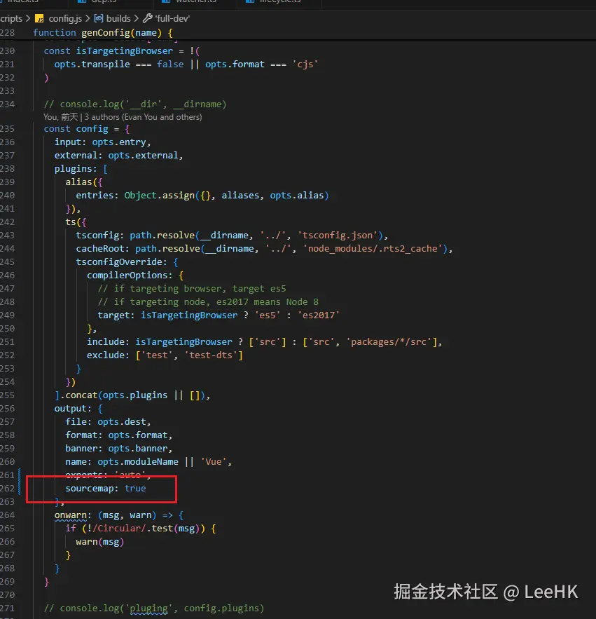 我得工程里面只用到了vue.js,所以我们可以把用不到得注释掉,只保留这一个文件即可,并把返回的配置项中output中添加一行sourcemap:true详情见下图