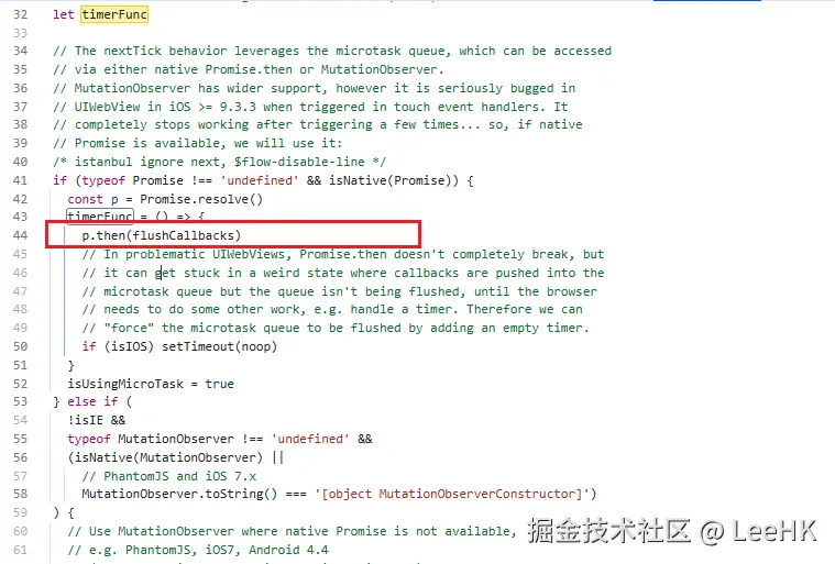callback数组中,之后如果没有pending就执行timerFunc()第一次执行得时候没有pending所以回直接执行这个函数